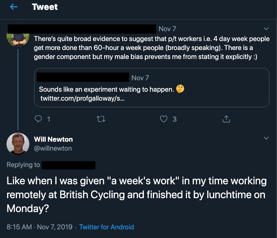 The ability to set one priority and stick to it resulted in a work experience I'll never forget, summed up in this exchange on Twitter.
