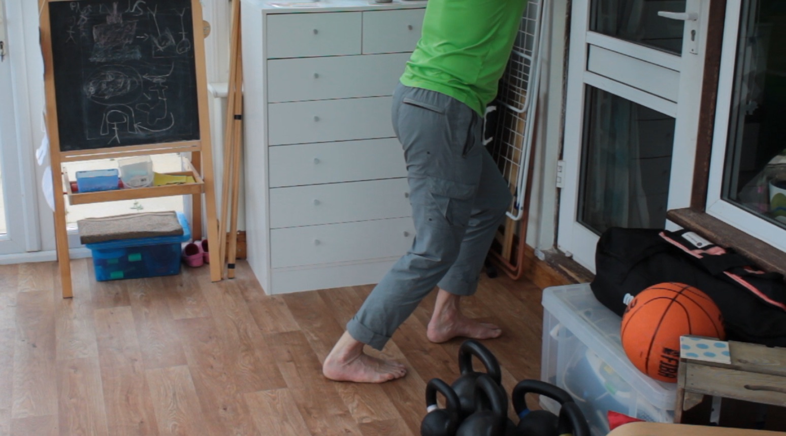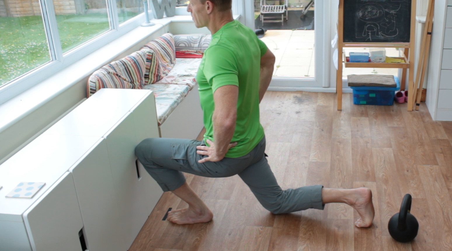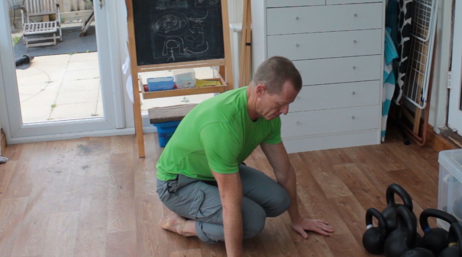 What’s great with the goblet squat is that the kettlebell, dumbbell or whatever you use acts as a counterweight so that you can find a good deep squat position without falling over or fighting to hold the position.
