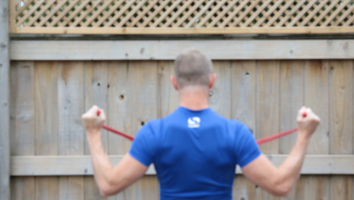 Focus on pulling your shoulder blades together and down throughout. A good cue is to think about putting your shoulder blades in your pockets.