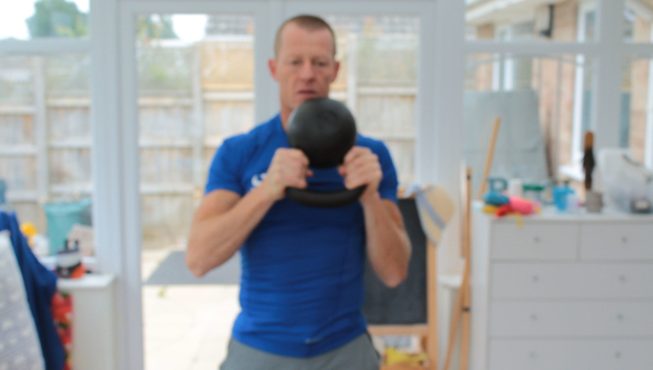 If you don't have a kettlebell, you can do an unweighted version by interlacing your fingers and performing a similar movement.
