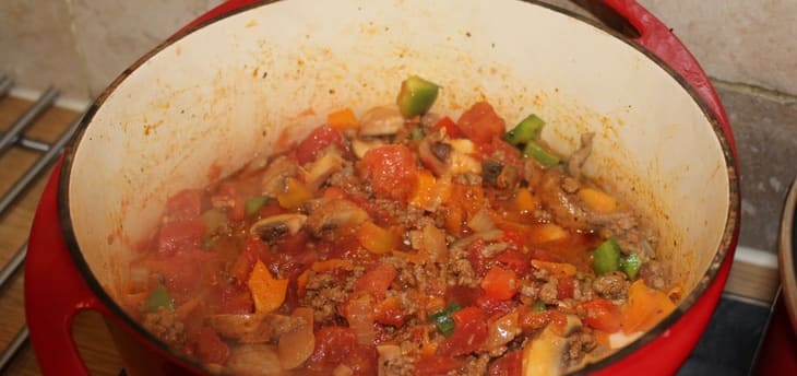 Add the beef mince and cook until thoroughly browned.