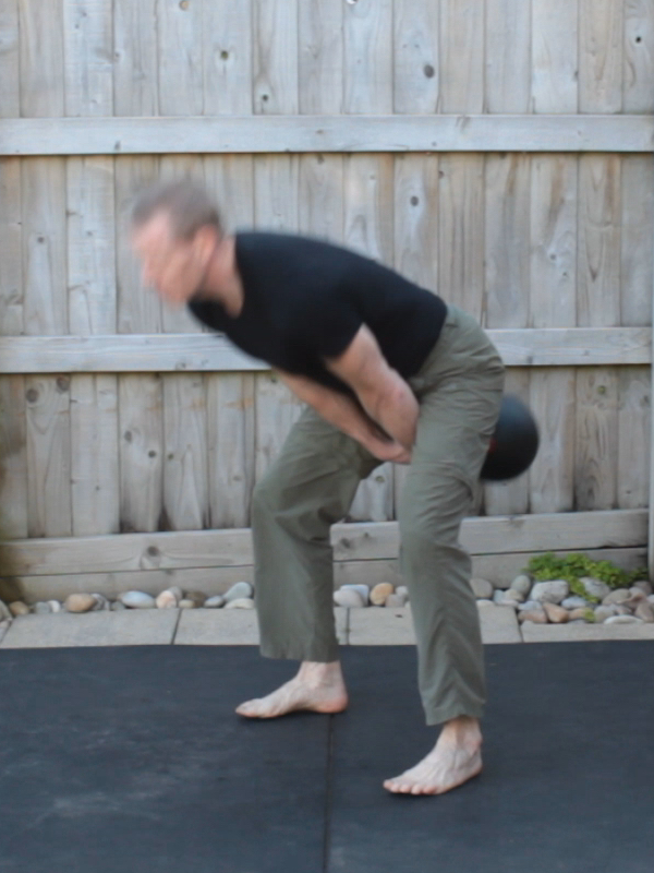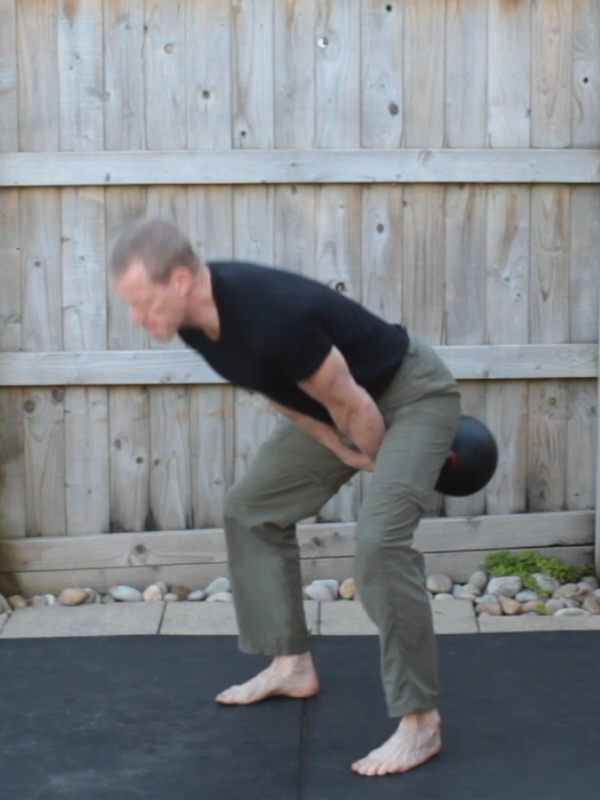 - As it approaches the bottom, hinge at the hips the same as you do for a kettlebell swing, deadlift etc. and “throw” the kettlebell back so that you load the glutes and hamstrings as much as possible.