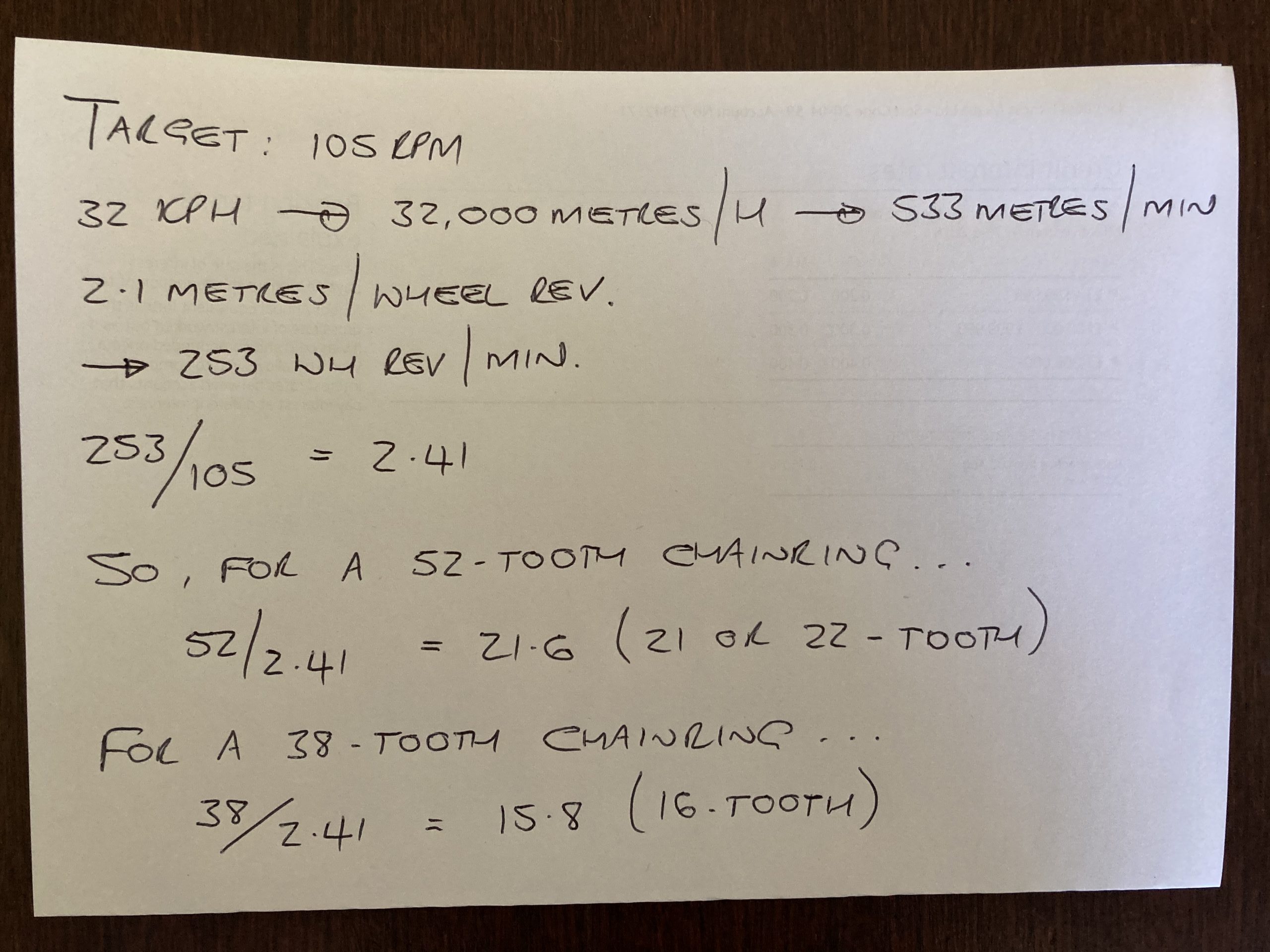 Once you know that, you work backwards to decide on the size of gear you're going to use, based on the speed you know you should be able to hold. When you can do that, you increase the size of the gear and start again.